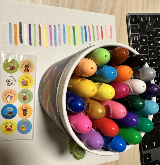 Really impressed with these crayons. The colors are bright, they don’t break easily, and they wash off hands and tables without any trouble. My kids have been using them nonstop and I love that they’re non-toxic. Definitely a great value.
